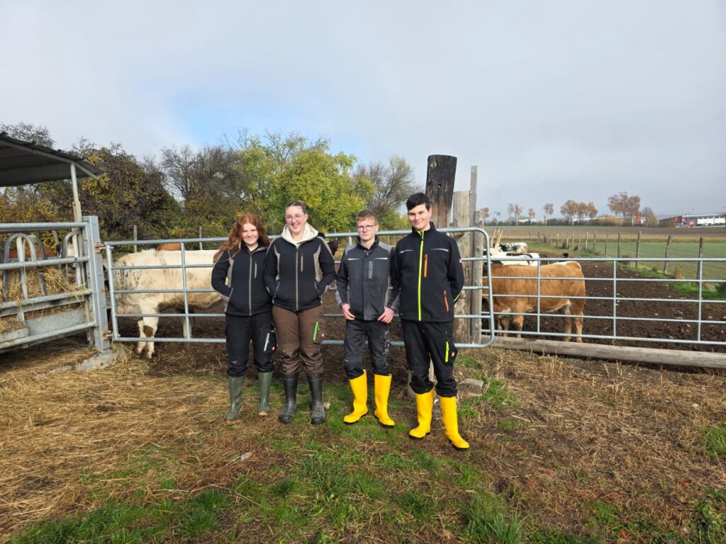 Am Weg zum Bereich der Kalbinnen der LFS Hollabrunn gesellen sich einige Burschen der 1. Klasse Landwirtschaft dazu. Sie erklären uns die verschiedenen Rassen – z.B. ist eine Kalbin dabei, die eine Kreuzung zwischen Fleckvieh und Blauweißer Belgier ist. Es gibt auch eine eigene Neigungsgruppe, die sich „Jüngzüchter“ nennt. Die Gruppe bereitet Tiere für Wettbewerbe wie das Landeschampionat vor, wobei sie Aspekte wie Tierpflege, Styling und Vorführtechniken trainieren und üben.